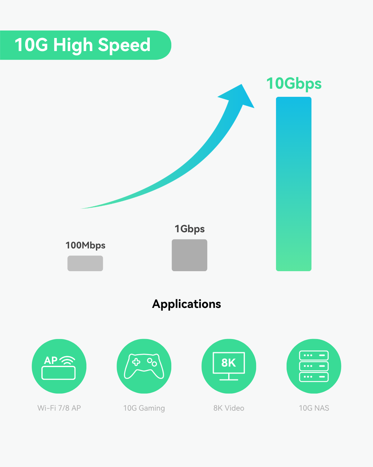 - 10G HIGH SPEED - Supports 10M/100M/1G/2.5G/10G auto-negotiation, delivering full 10Gbps bandwidth over a single Ethernet port for WIFI 7 AP, 10G NAS, 4K Video and other high-bandwidth PoE devices.