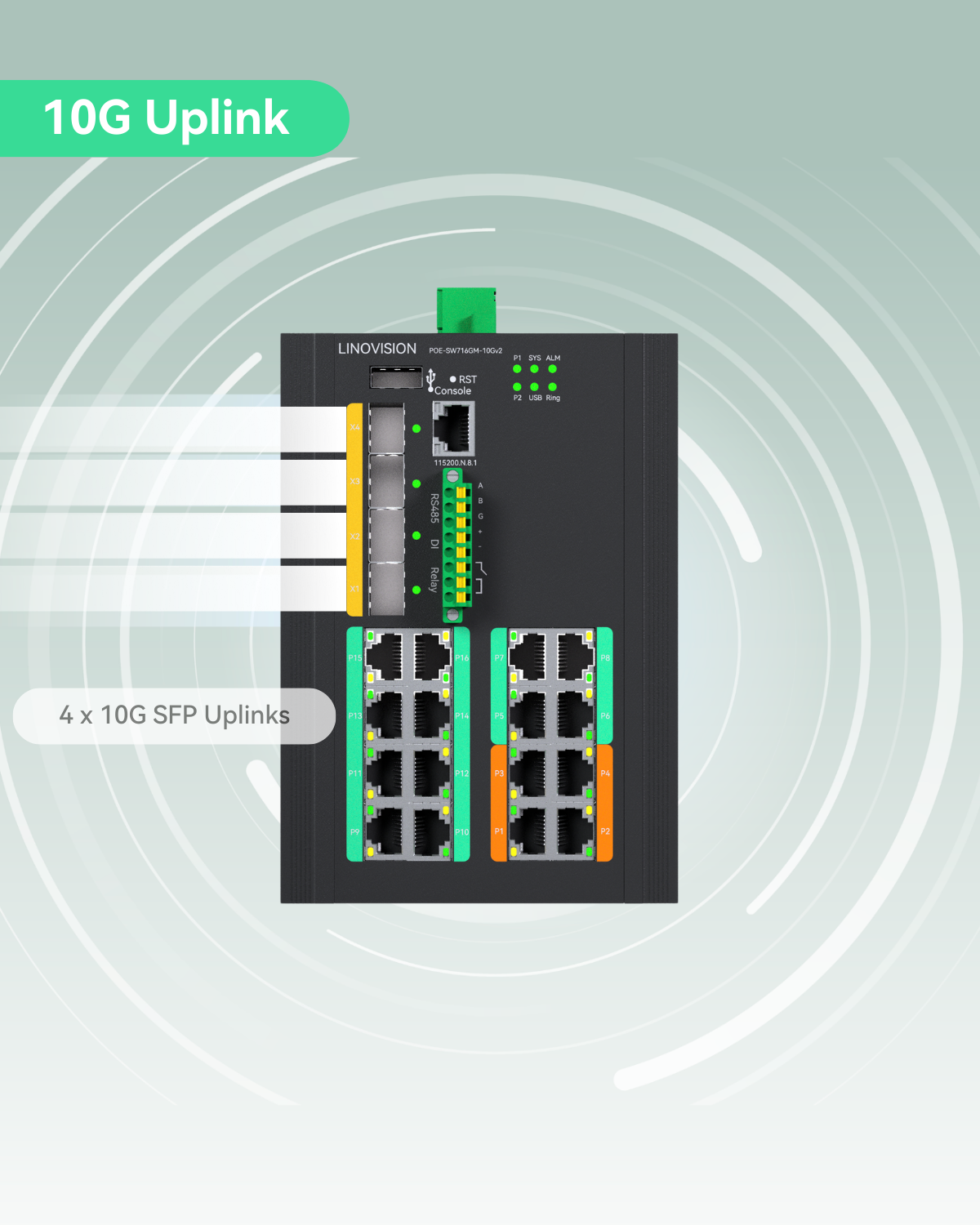 Industrial 16-Port Full Gigabit L3 Managed BT90W PoE++ Switch with 4-Port 10G SFP+ Uplink, Total 370W PoE Budget