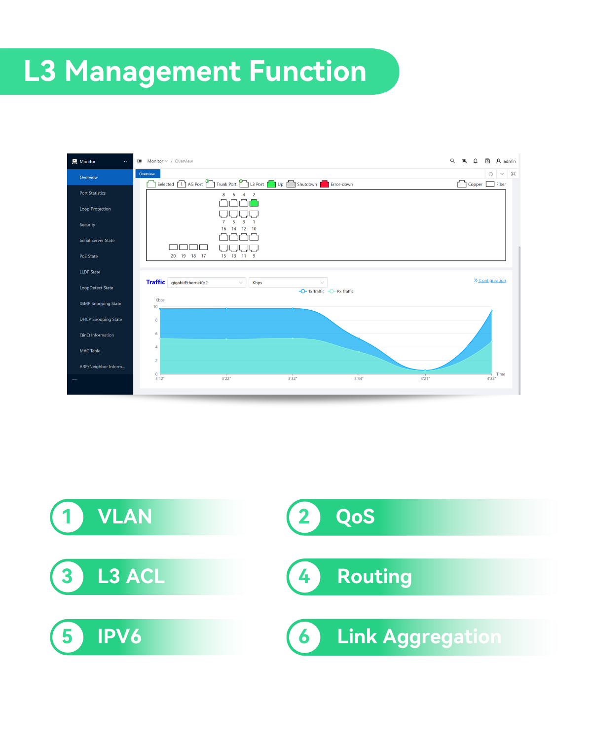 - INDUSTRIAL L3 MANAGED POE SWITCH - Supports Static and Dynamic Routing, RIP, OSPF, BGP4,ECMP, VRRP, etc. It can be managed via WEB, CLI or SNMP.