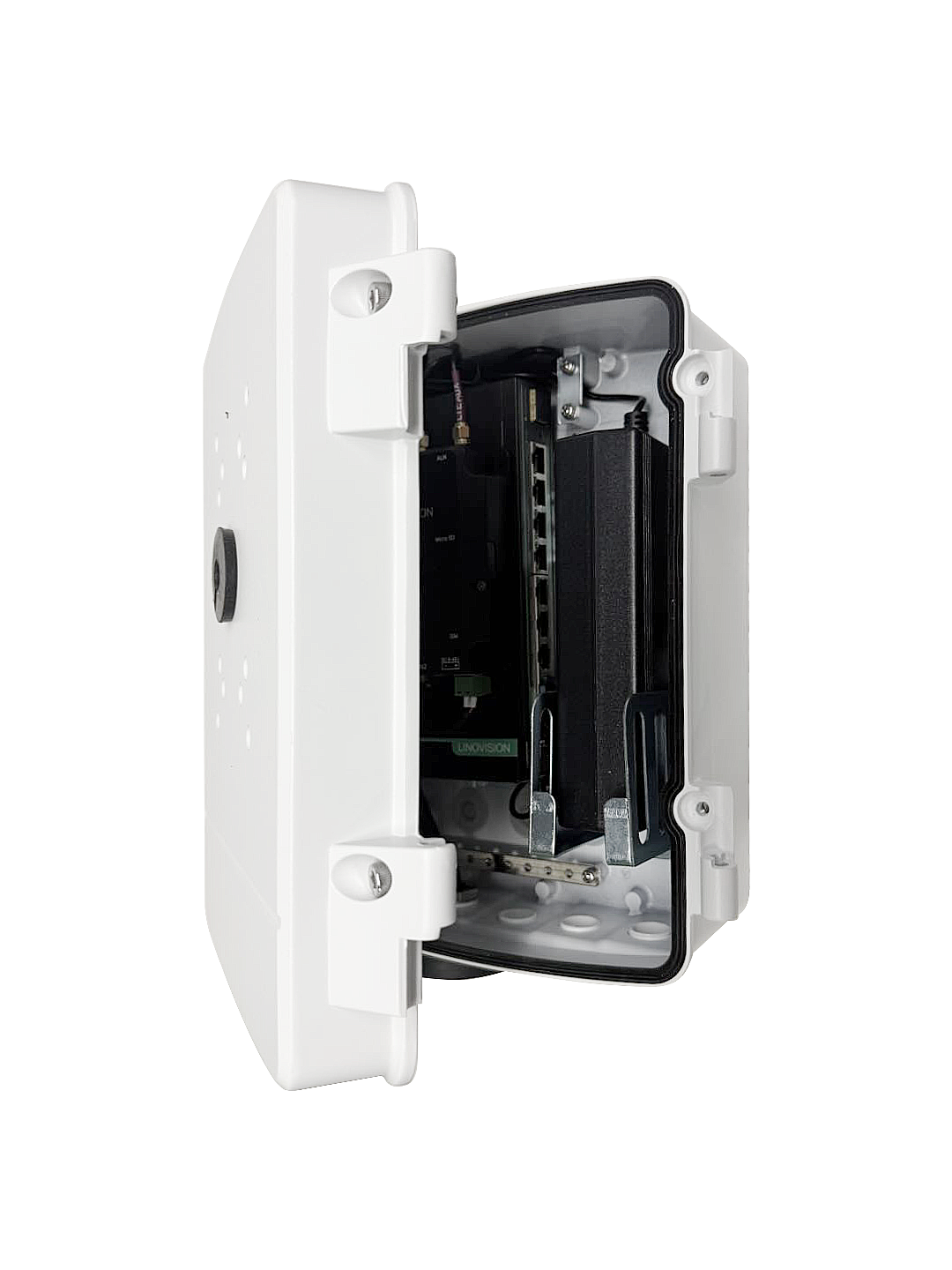 (POE-SWR308G25-R32W) Outdoor 8-Port Remote Cloud Managed PoE Switch with 4G LTE Cellular Connection and Camera Mount