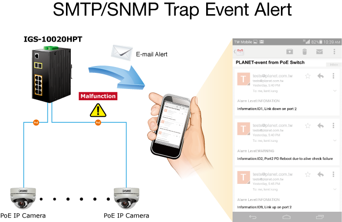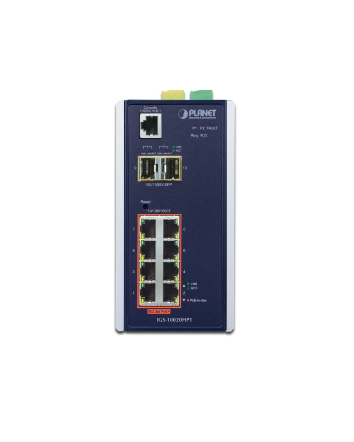 PLANET IGS-10020HPT IP30 Industrial SNMP Switch 8-Port 10/100/1000Base-TX 802.3at PoE + 2-Port 100/1000FX (SFP)