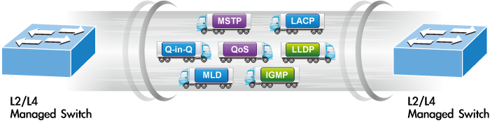The IGS-5225-8P4S-12V can be programmed for advanced switch management functions such as dynamic port link aggregation, Q-in-Q VLAN, private VLAN, Rapid Spanning Tree Protocol, Layer 2 to Layer 4 QoS, bandwidth control and IGMP snooping. The IGS-5225-8P4S-12V provides 802.1Q tagged VLAN, and the VLAN groups allowed will be maximally up to 4K. Via aggregation of supporting ports, the IGS-5225-8P4S-12V allows the operation of a high-speed trunk combining multiple ports. It enables a maximum of up to 10 trunk groups with 4 ports per trunk group, and supports fail-over as well.