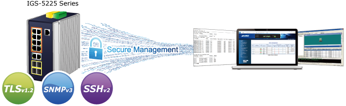 The IGS-5225-8P4S-12V comes with enhanced cyber security to fend off cyber threats and cyber attacks. It supports SSHv2 and TLSv1.2 protocols to provide strong protection against advanced threats. Served as a key point to transmit data to customer's critical equipment in a business network, the cyber security feature of the IGS-5225-8P4S-12V protects the switch management and enhances the security of the mission-critical network without any extra deployment cost and effort.