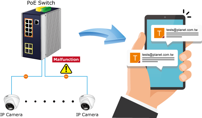 The IGS-5225-8P4S-12V provides event alert function to help to diagnose the abnormal device owing to whether or not there is a break of the network connection, or the rebooting response.