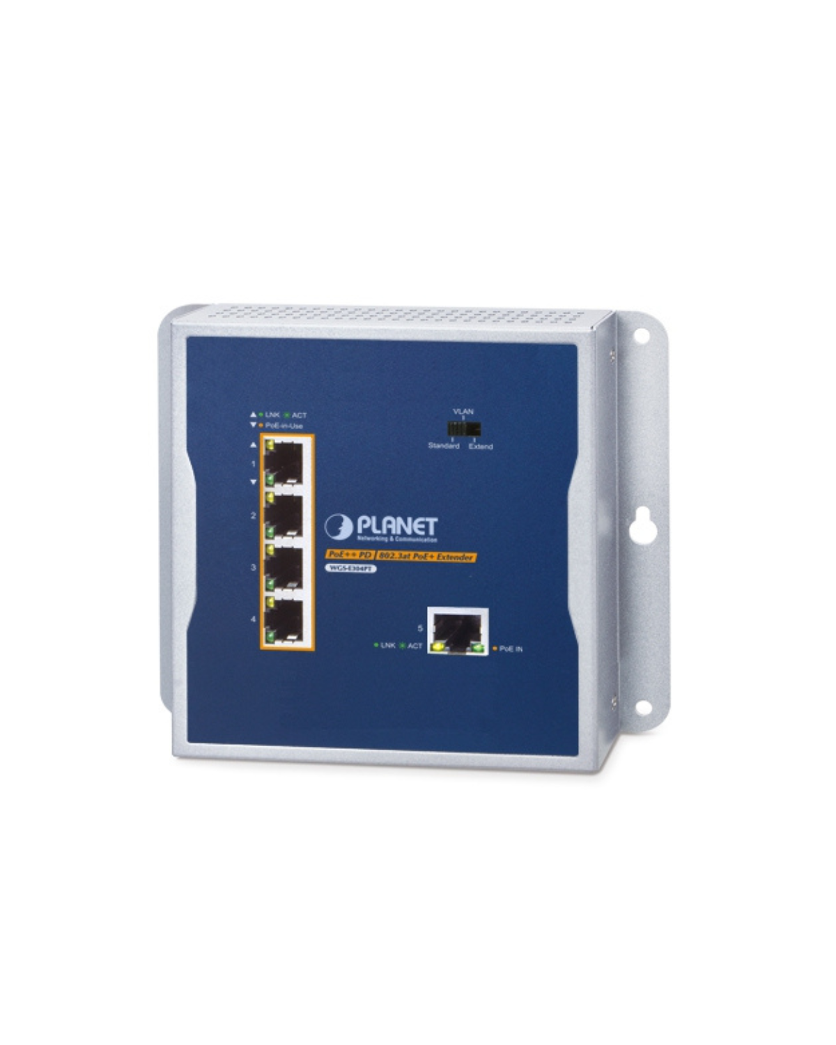 PLANET Industrial Wall-Mount Flat Type 4-Port Passthrough PoE Switch & PoE Extender