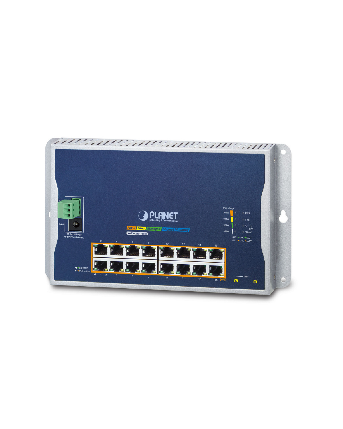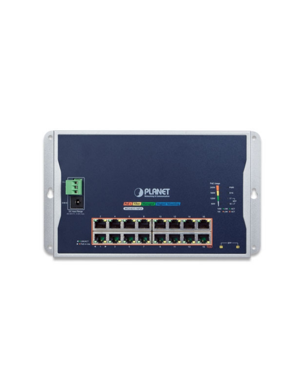 PLANET WGS-4215-16P2S Industrial Flat Wall Mount L2 Managed 16-Port PoE Switch, 240W Total PoE Budget