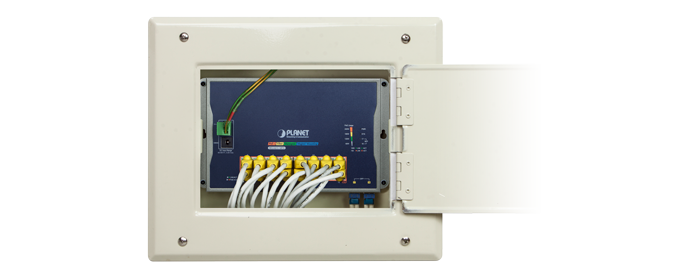 Space-saving, flat-type switch specifically designed for wall mounting in compact and harsh industrial environments where cabinet or DIN-rail installation isn’t possible.