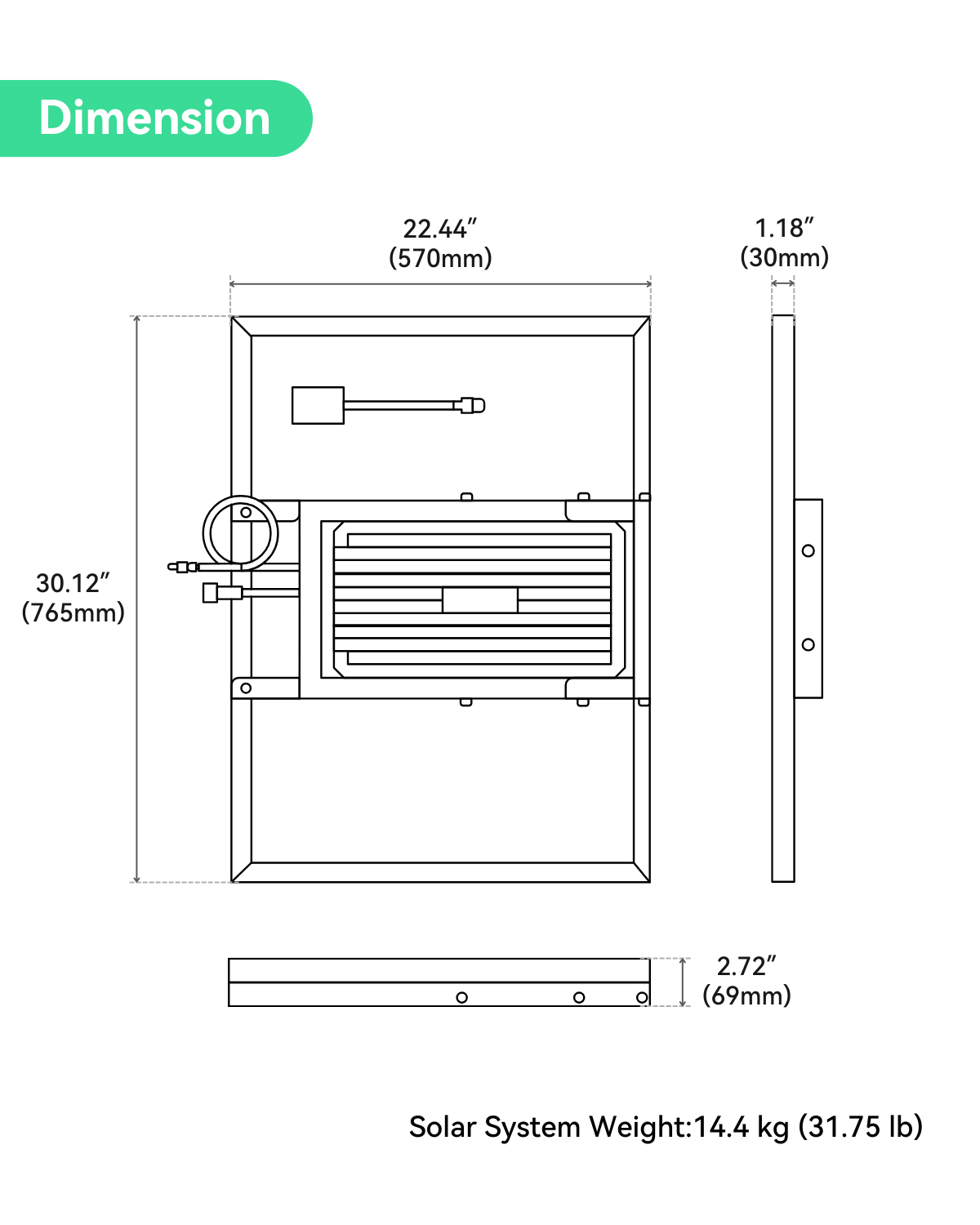 • 12V 555WH battery capacity, about 27 hours operation in rainy days