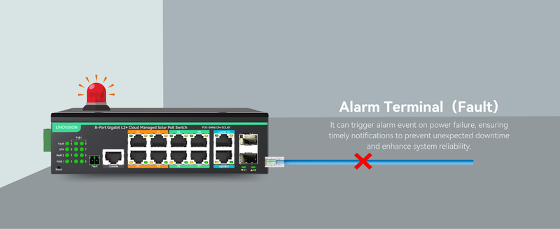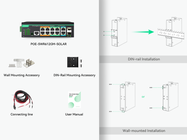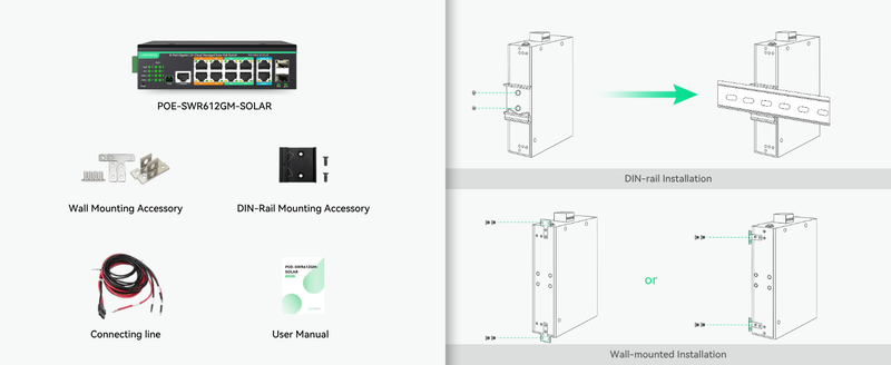 12 Ports L2+ Cloud Managed PoE Switch with DC8V to DC57V Voltage Booster (POE-SWR612GM-SOLAR)