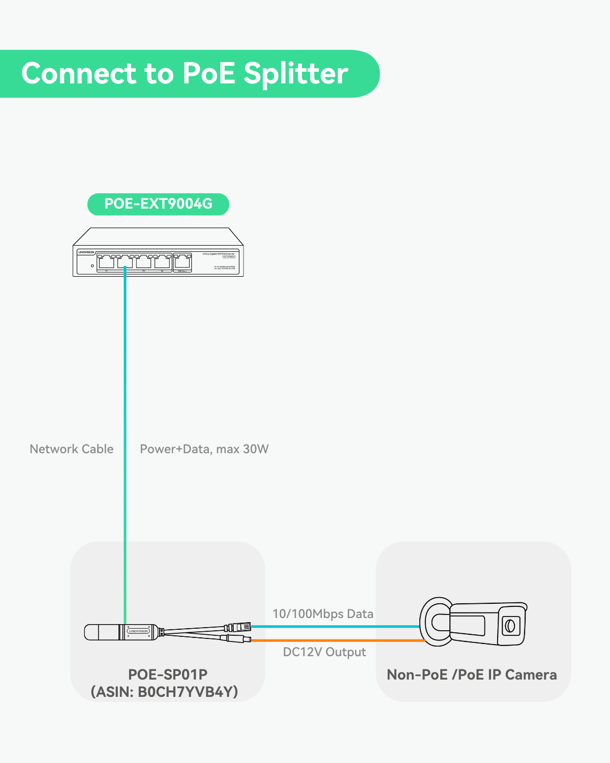 - Passive POE, poe splitter, run one network cable to connect four POE or non-POE devices.