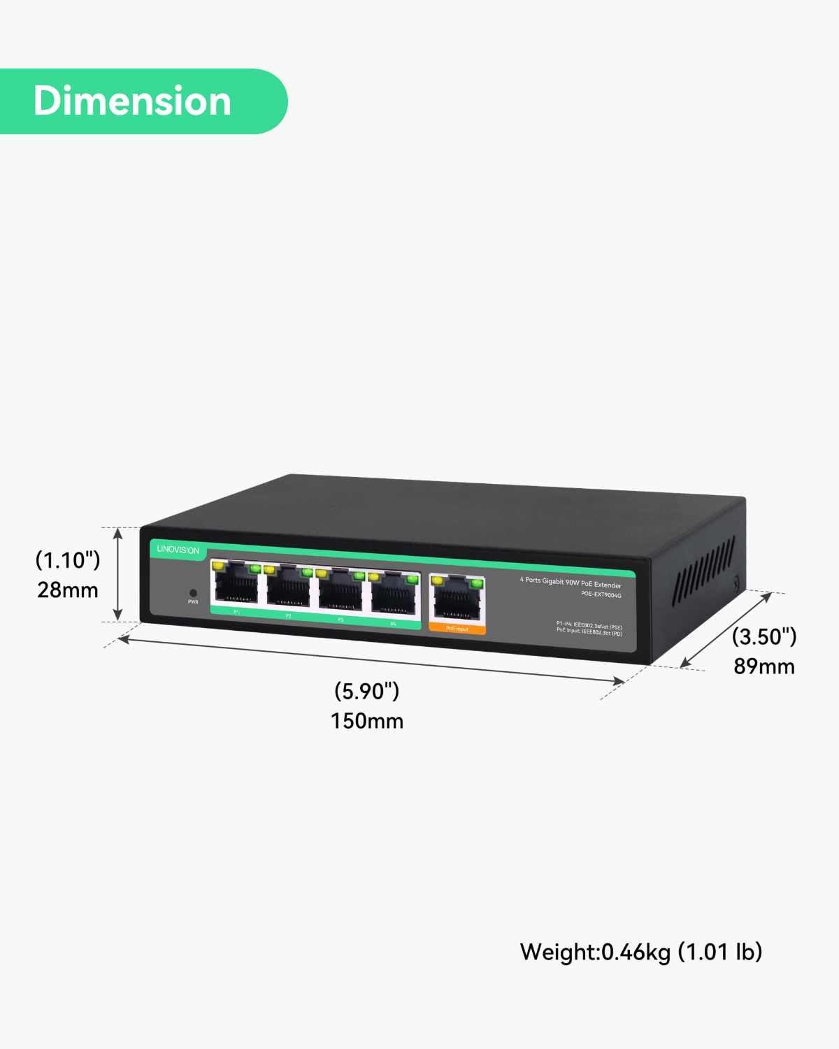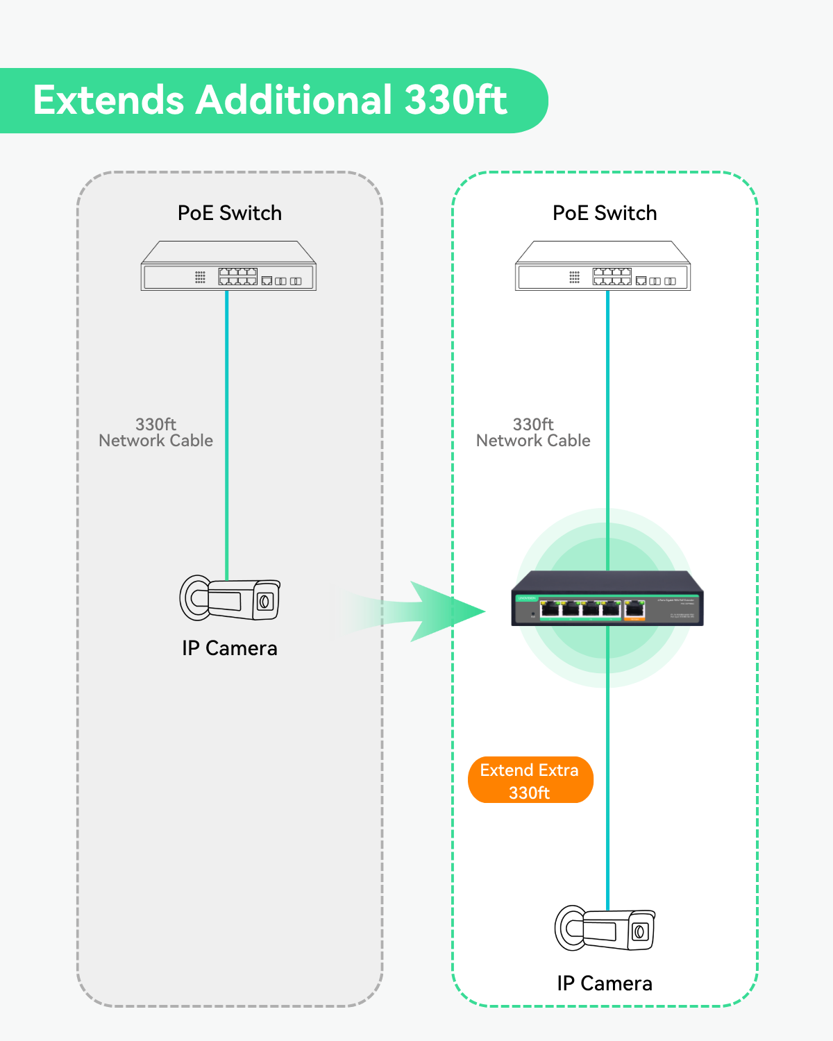 - EXTEND PoE and DATA 330FT - Extends PoE and Gigabit Ethernet an additional 330ft.