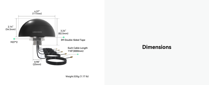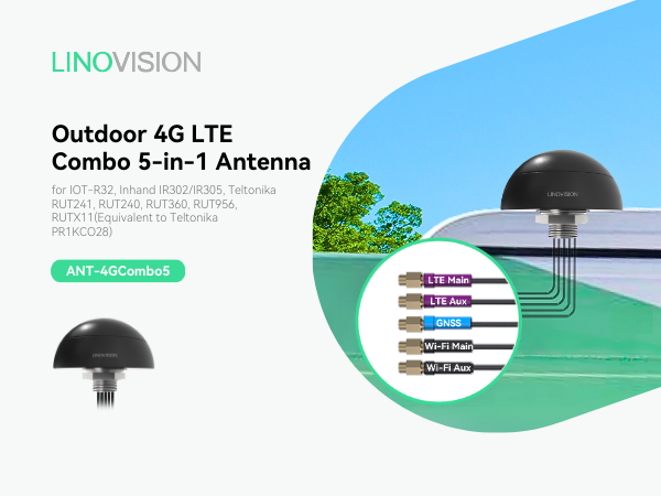 COMPATIBLE ROUTERs - Work with most 4G LTE cellular routers in the market with 2/3/5 anntena interfaces, like Linovision IOT-R32, Inhand IR302/IR305, Teltonika RUT241, RUT240, RUT360, RUT956, RUTX11 (Equivalent to Teltonika PR1KCO28).
