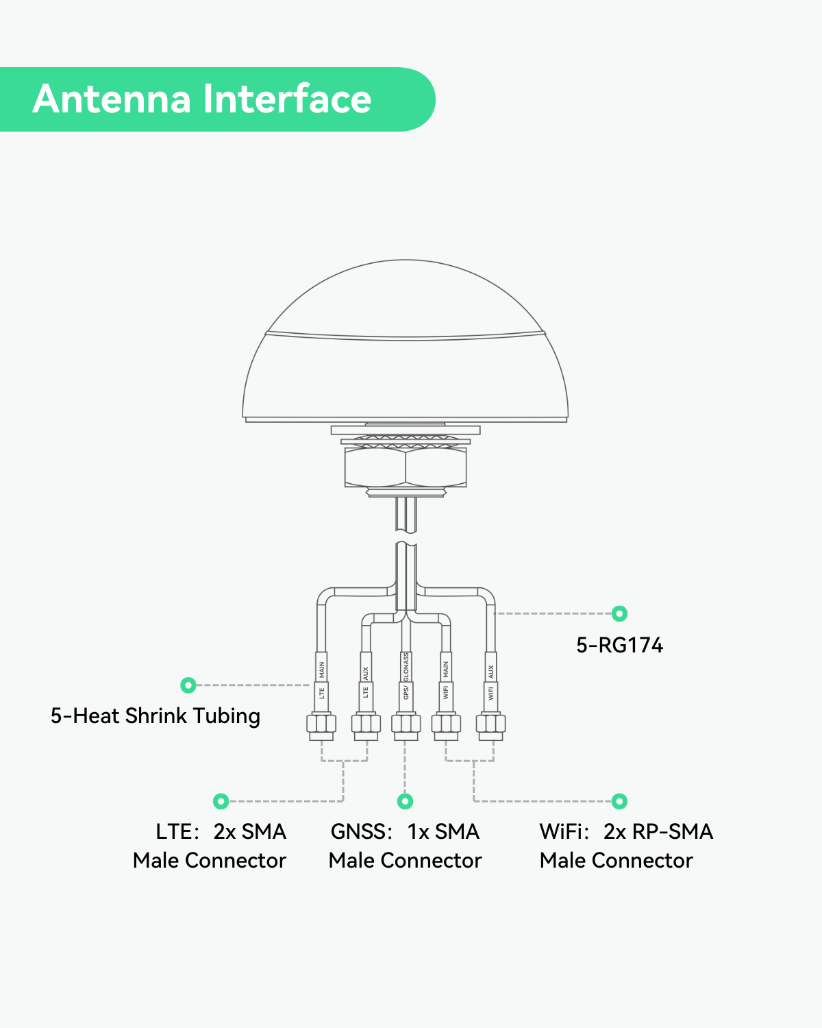 4G LTE Combo 5-in-1 Antenna, Outdoor Roof type, work with Linovision IOT-R32, Inhand IR302/IR305, Teltonika RUT241, RUT240, RUT360, RUT956, RUTX11 (ANT-4GCOMBO5)