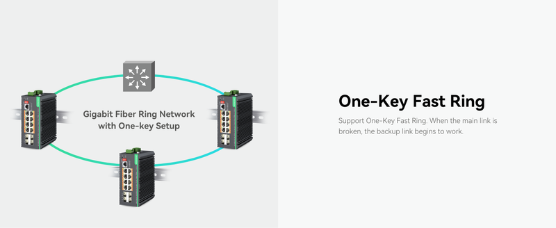 - One-Key FAST RING and SCP - Support One-Key Fast Ring Fiber Network and Broadcast Storms Protection.