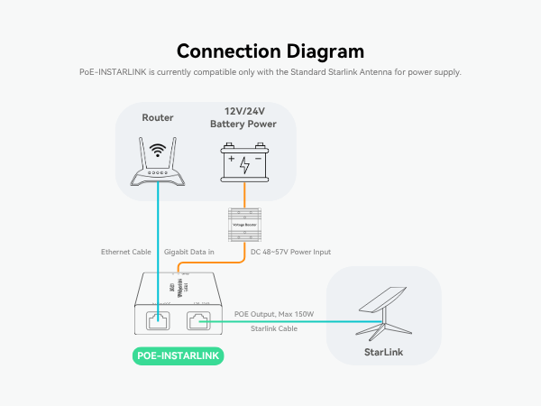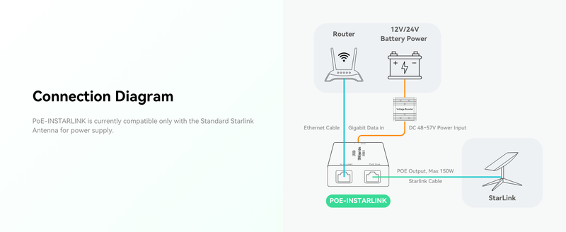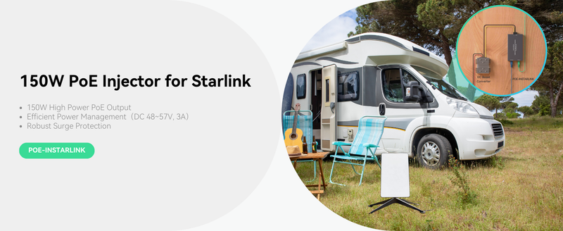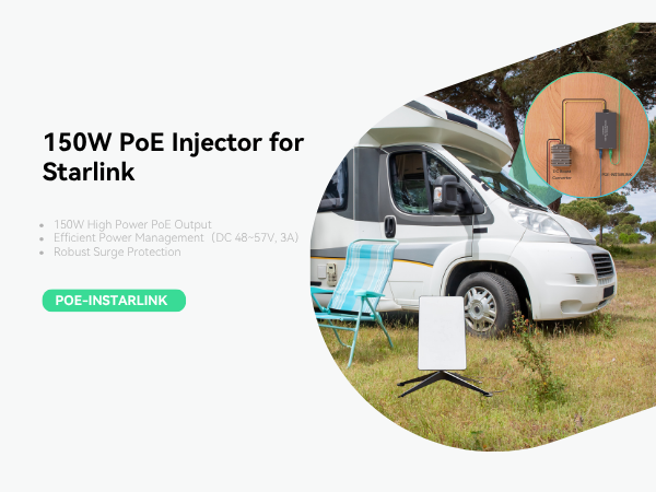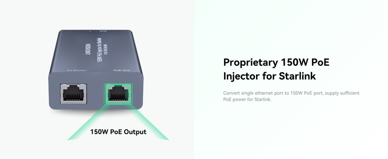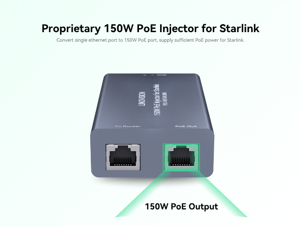 150W Starlink PoE Injector- Efficiently delivers 150W power to support the Starlink Standard Version for power supply for reliable performance.