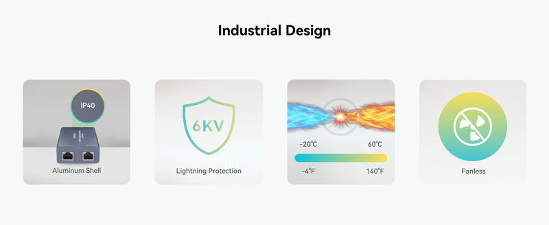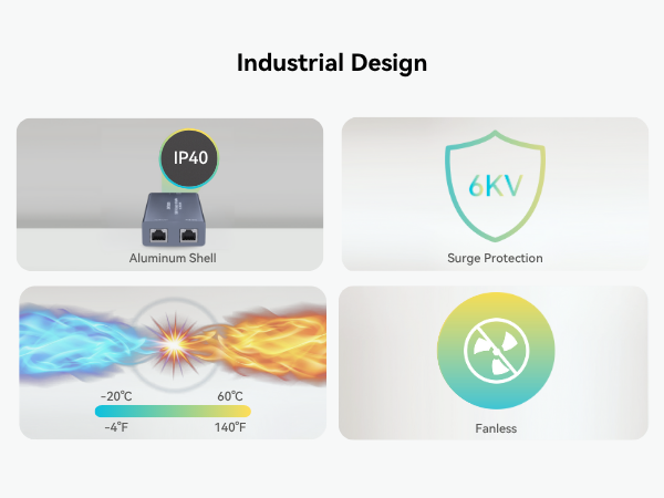 Robust Surge and ESD Protection- Offers superior protection with ±6KV Surge immunity and ±15KV ESD, providing Class A protection for enhanced durability and reliability. Wide temperature range -4℉ to 140℉ (-20°C to 60°C).