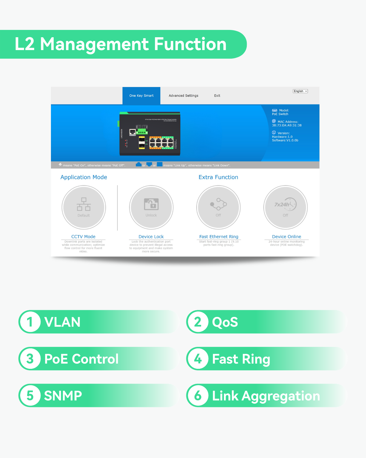 • LAYER 2 MANAGED PoE SWITCH - 8 x 10/100/1000Mbps RJ-45 ports + 2 x 1G/2.5Gbps SFP uplinks. Supports VLAN, QoS, Link Aggregation, PoE Management, and per-port control. Manage via Web, CLI, or SNMP.