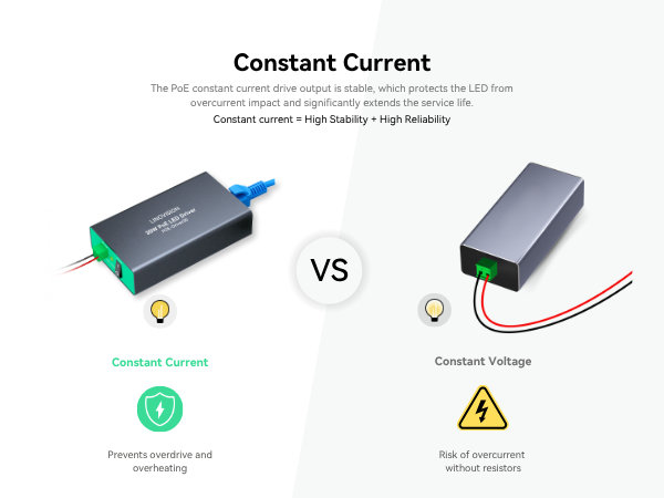 • Constant Current Output - As most LEDs are current-driven device instead of voltage-driven, this Constant Current Driver ensures that the LED receives the optimal amount of current for consistent performance and prevents damage from voltage fluctuations.