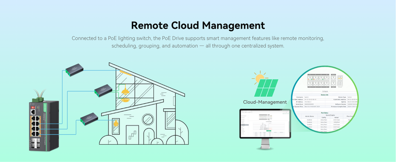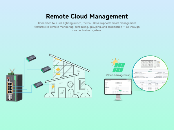 • Smart management -The POE transmission system is inherently a network management system. It is convenient to remotely turn on/off power and monitor the energy consumption.