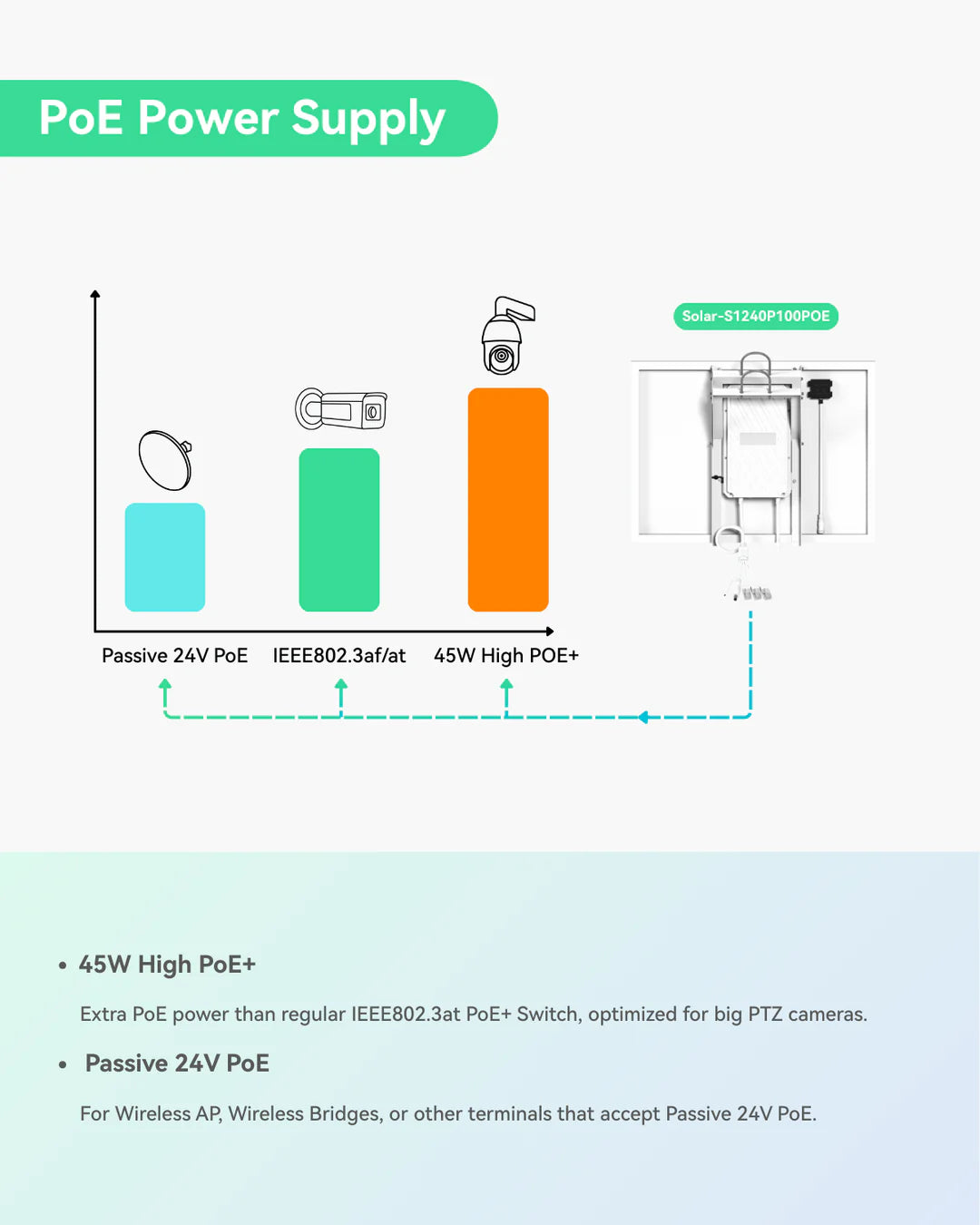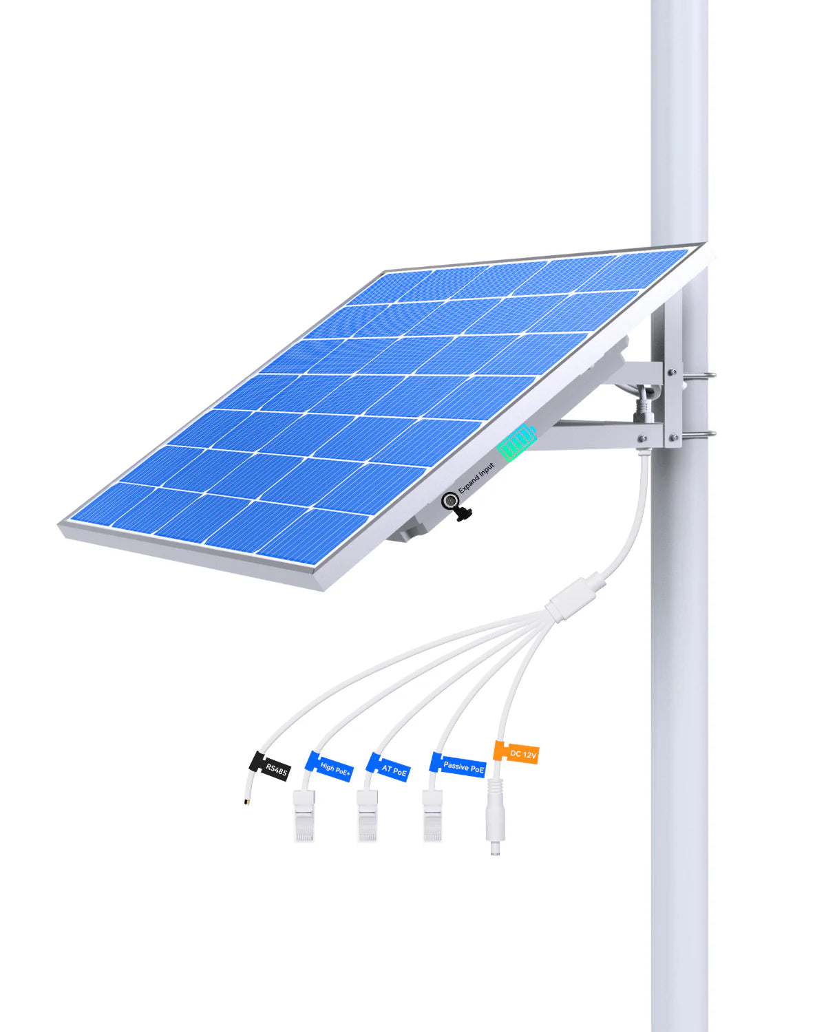 (SOLAR-S1240P100POE) Fully Integrated 5-in-1 Smart Solar Power Supply System for Security Cameras and IoT Device, support 3 Ports PoE Output