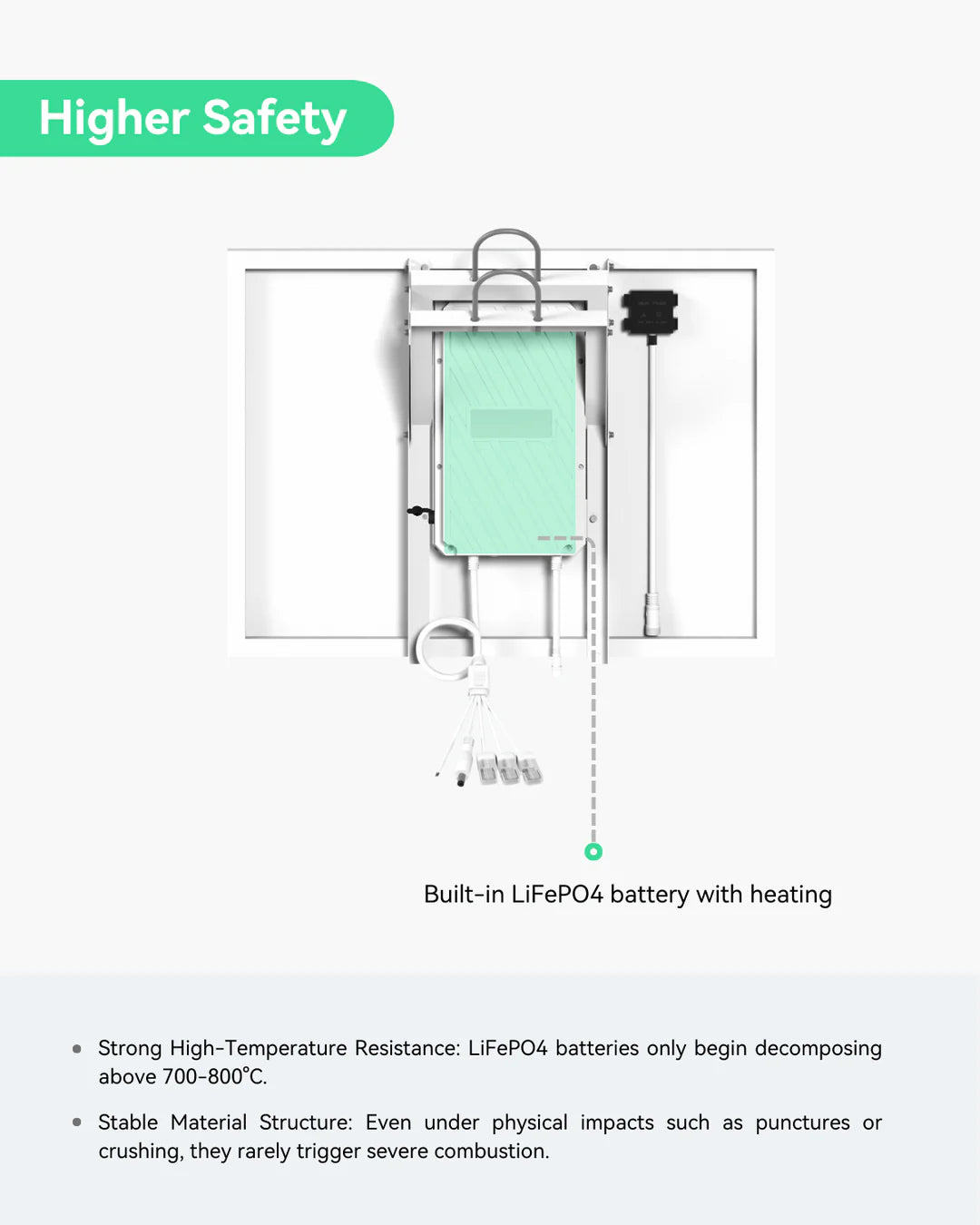 - HIGHER SAFETY - LiFePO4 batteries offer enhanced safety, with strong high-temperature resistance and a stable material structure.