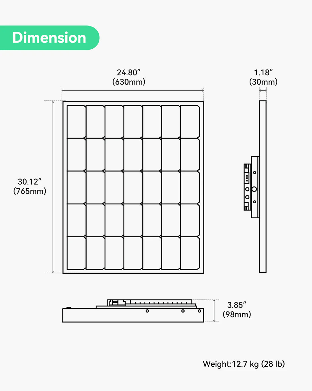 SOLAR PANEL - 100W monocrystalline solar panel with foldable pole mount bracket