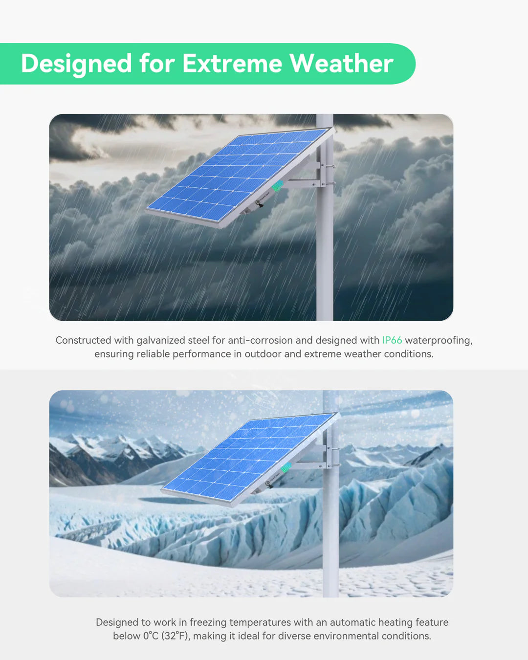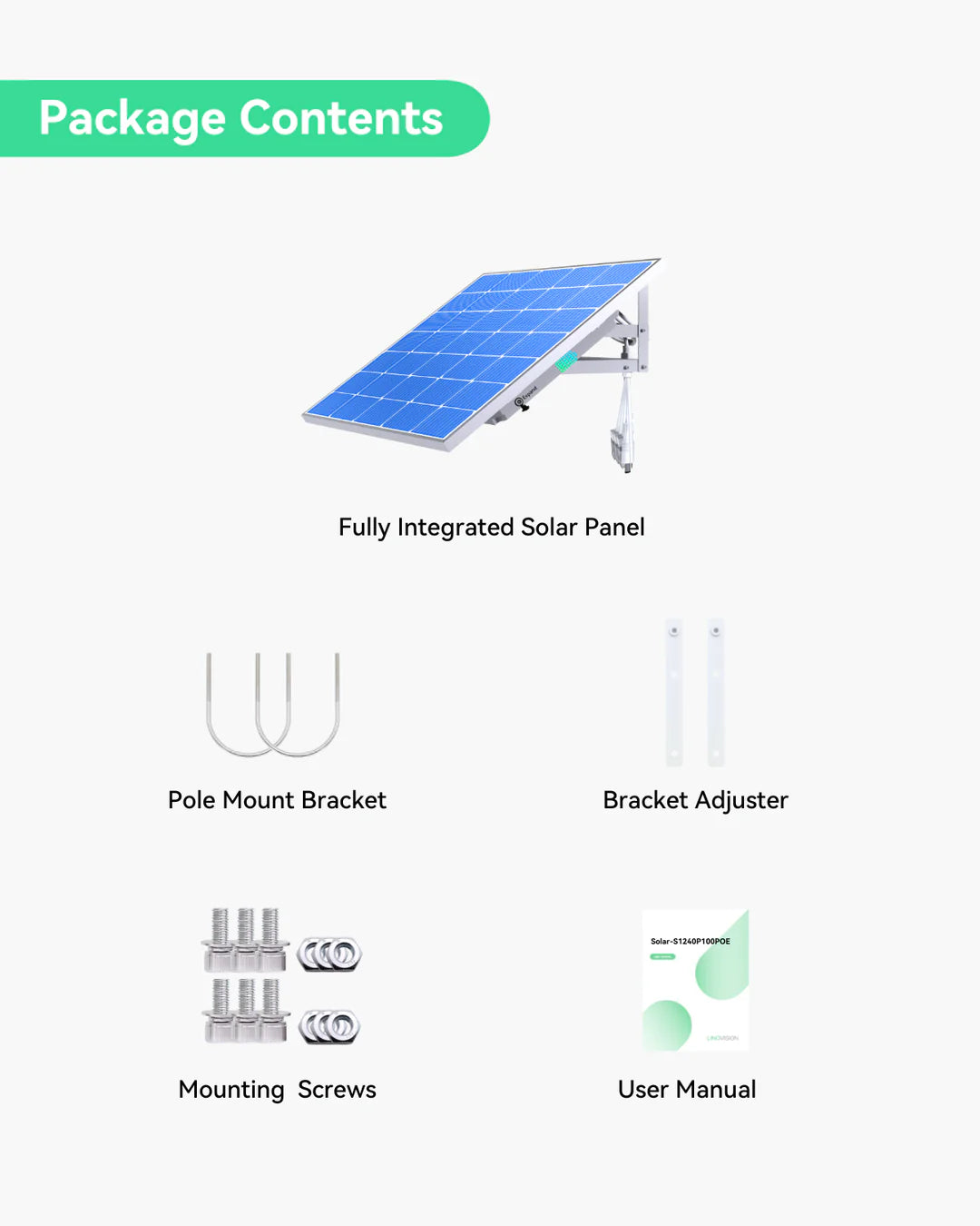 - INTEGRATED DESIGN - Fully integrated 5-in-1 design (solar panel, battery, charge controller, poe switch and bracket)