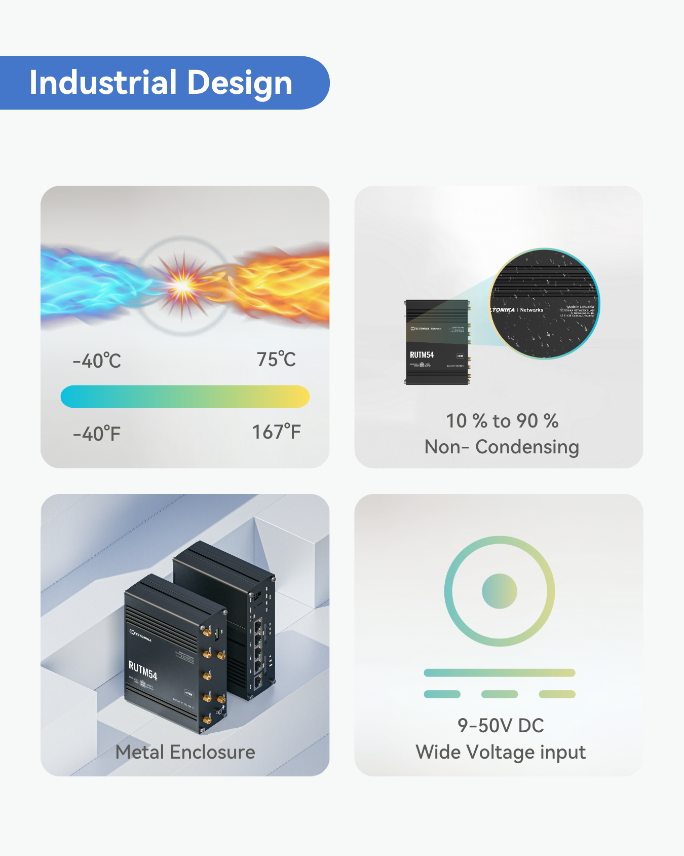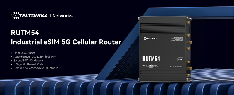 Note: RUTM54 is quite similar to another popular 5G router (RUTM50), but with two key difference: supports eSIM and global Telit module. So it is NDAA and TAA Compliant.