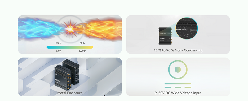 • INDUSTRIAL DESIGN -Aluminium housing; Wide voltage input 9-50V DC and wide operating temperature range -40°F ~ 167°F (-40°C ~ 75°C), suitable for harsh environments.