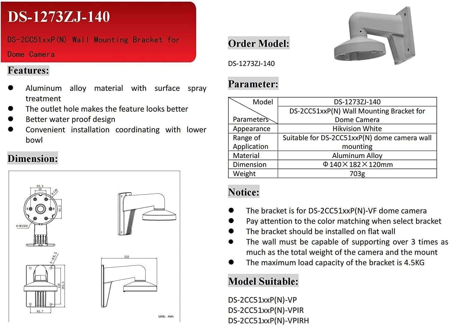 海康威视 DS-1273ZJ-140 DS-2CC51xxP(N) 半球型摄像机壁挂支架(PC140 盖加壁挂支架)